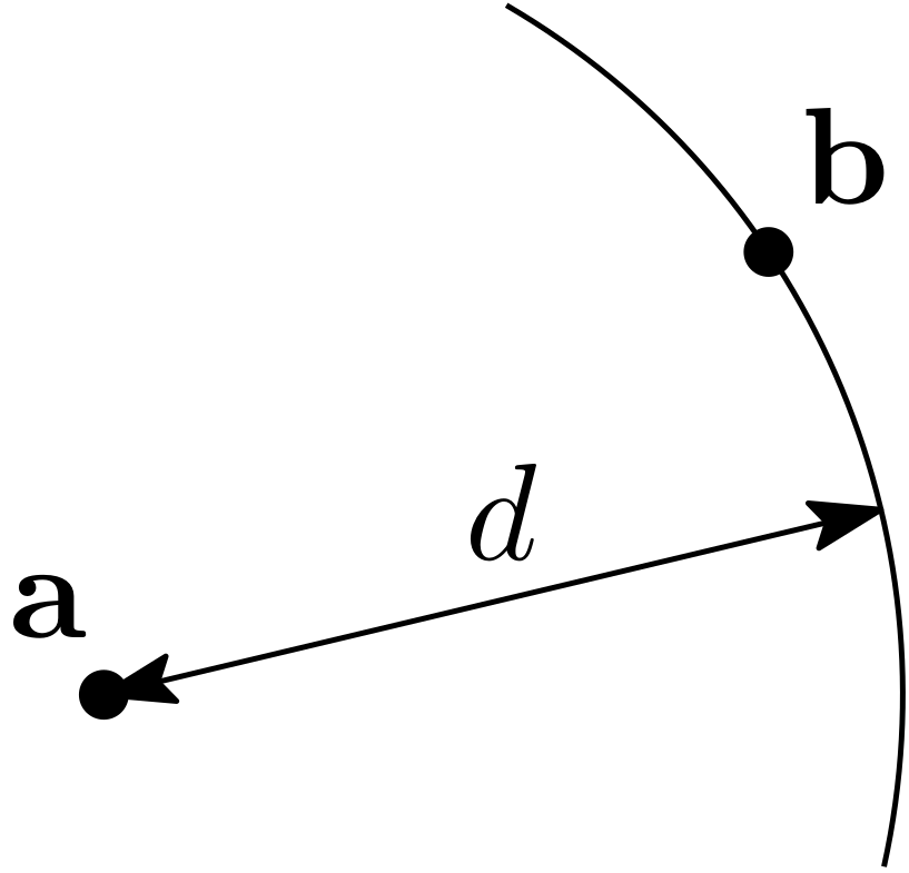 Implements the distance constraint on \(\mathbf{a}\in\mathbb{R}^2\), \(\mathbf{b}\in\mathbb{R}^2\) and \(d\in\mathbb{R}\) such that: