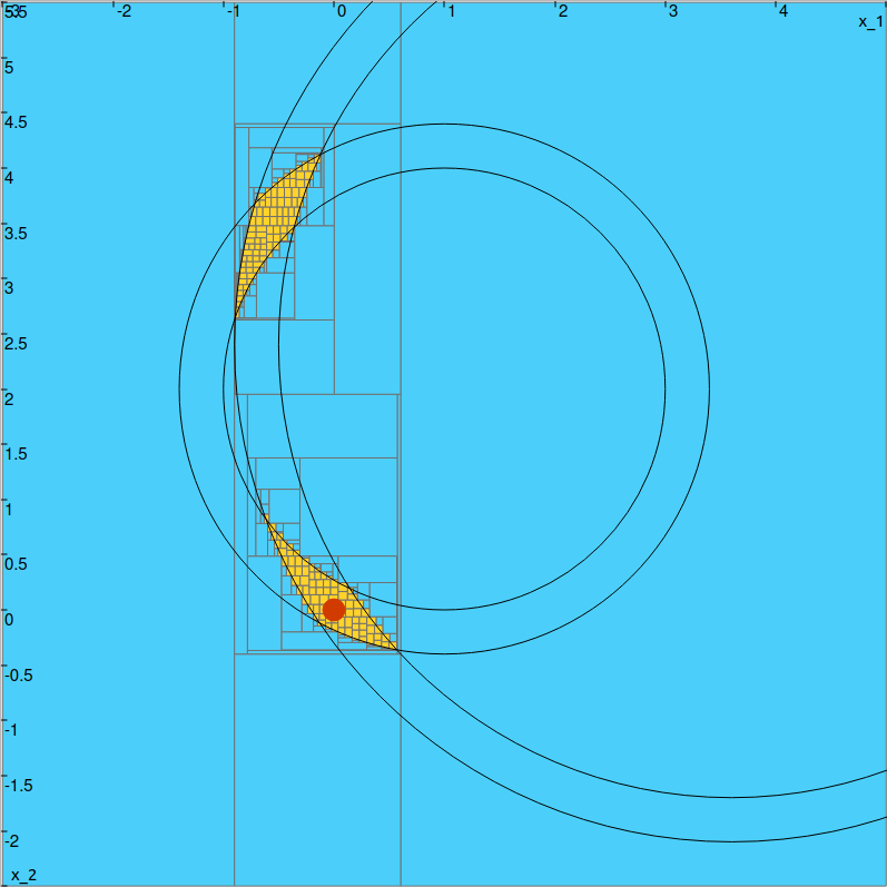\[d^2=(a_1-b_1)^2+(a_2-b_2)^2. \]The contractor can be applied either on a 5d box or on a set of five intervals.